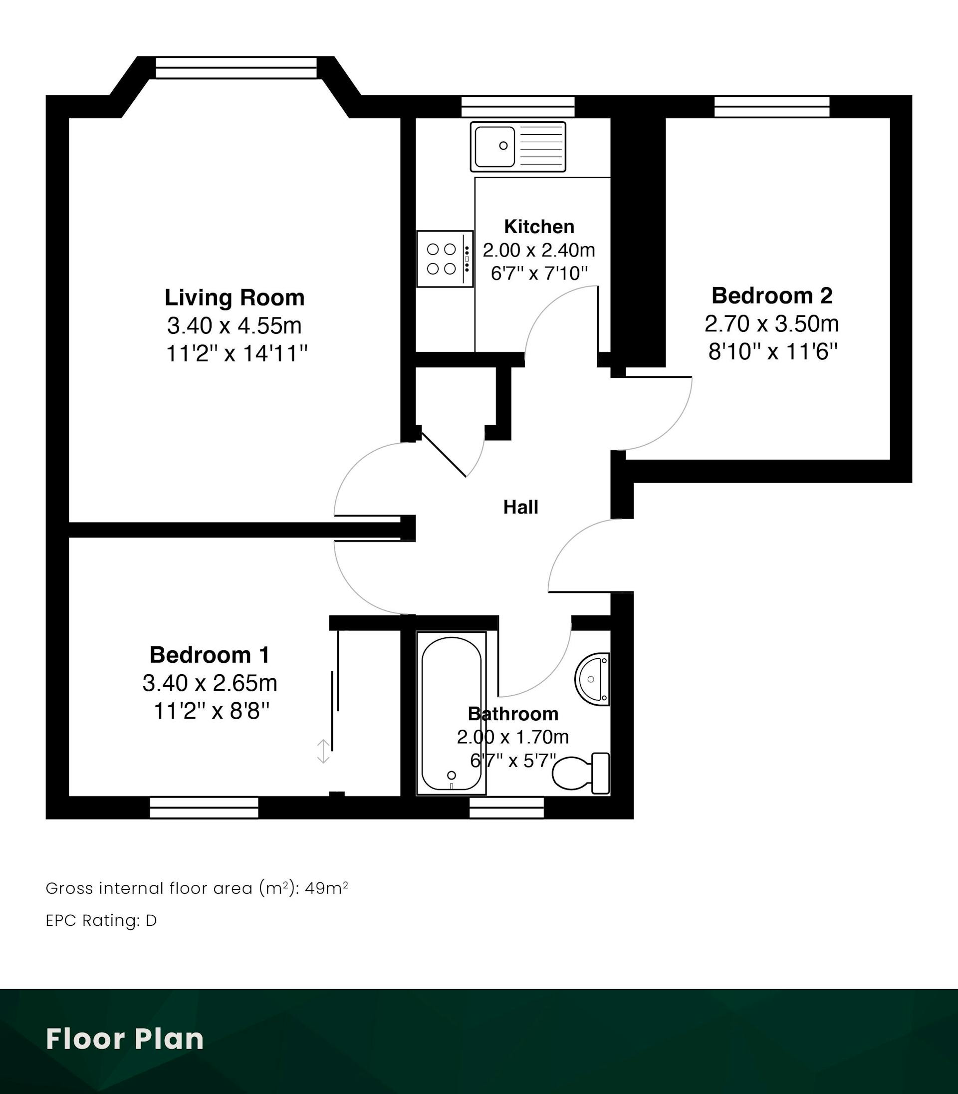 Both bedrooms are well-proportioned doubles and are bright and freshly finished with new flooring throughout. The main bedroom also benefits from a built-in wardrobe. The accommodation is completed by a newly fitted modern bathroom, finished to a high standard and featuring a brand new bath with overhead shower, new basin and new toilet.