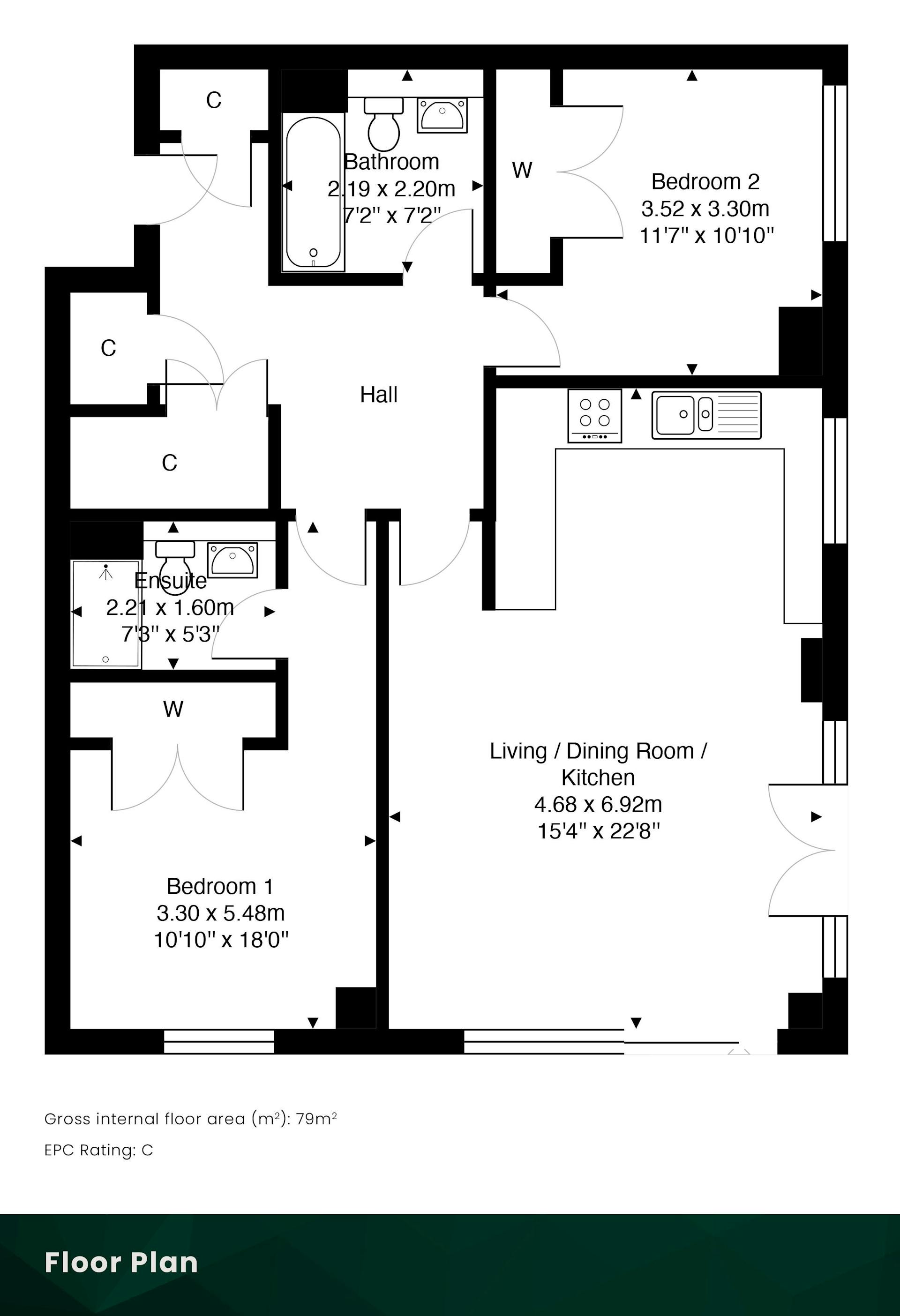 There are two well-proportioned double bedrooms, both of which benefit from built-in wardrobes. The principal bedroom is further enhanced by a stylish en-suite shower room. There is a contemporary main bathroom fitted with a modern three-piece suite and mains-powered shower, and the entrance hall provides excellent integral storage with three cupboards, secure video entry system, and laminate flooring, offering a practical and well-organised layout.