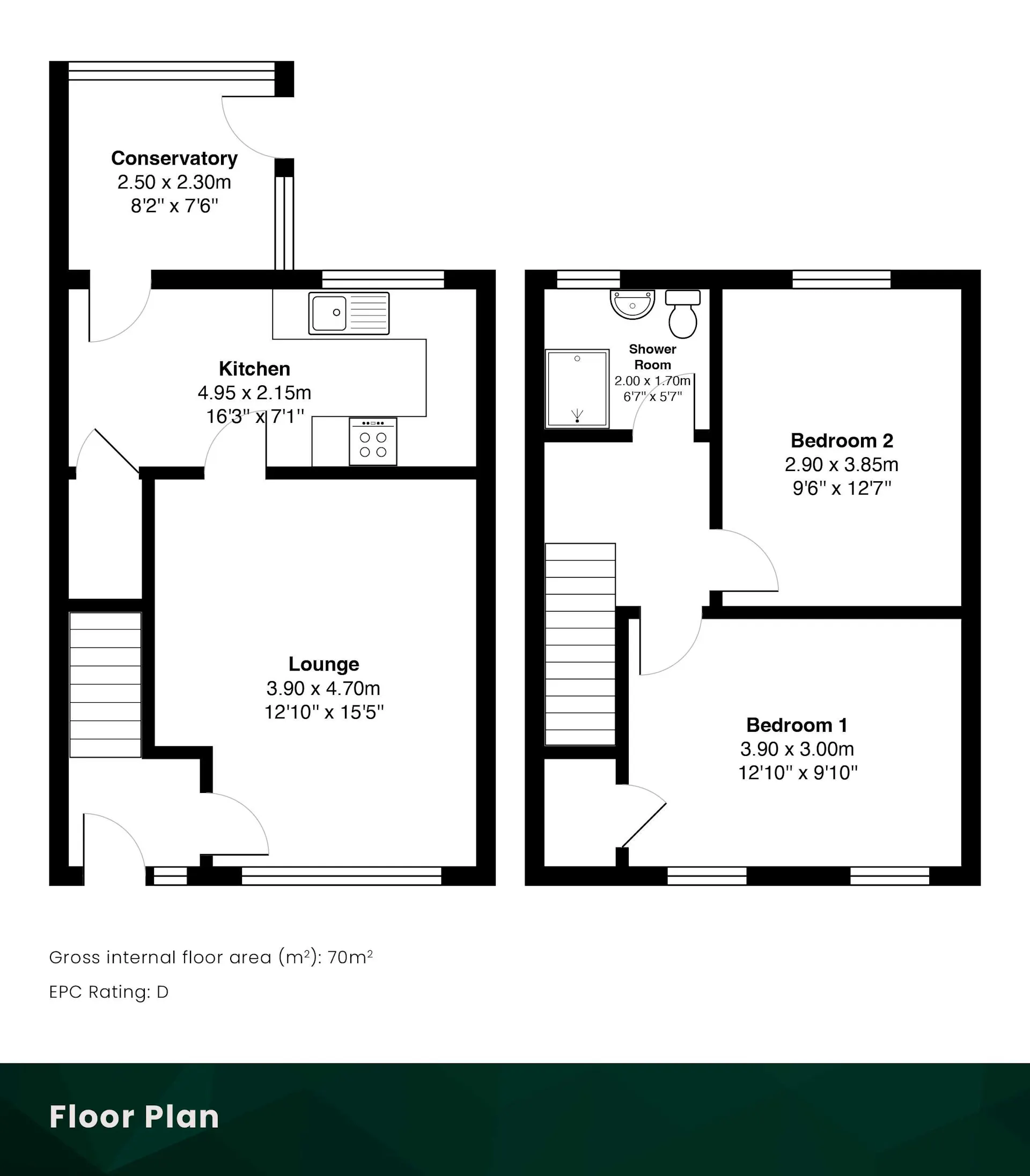 There are two good-sized bedrooms in this lovely home, both with ample space for free-standing furniture. The tiled family bathroom is bright and fresh, finished as a wet room, with a white suite and electric shower. There are ample cupboard spaces to help keep everything in its place.