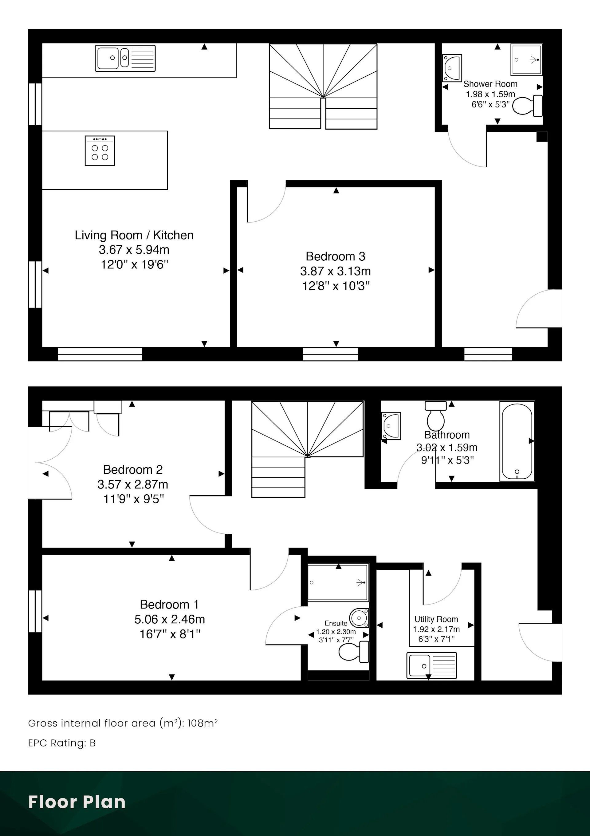 This level also hosts a generous third double bedroom, perfect for a home office or an additional living space, and a stylish, modern shower room.