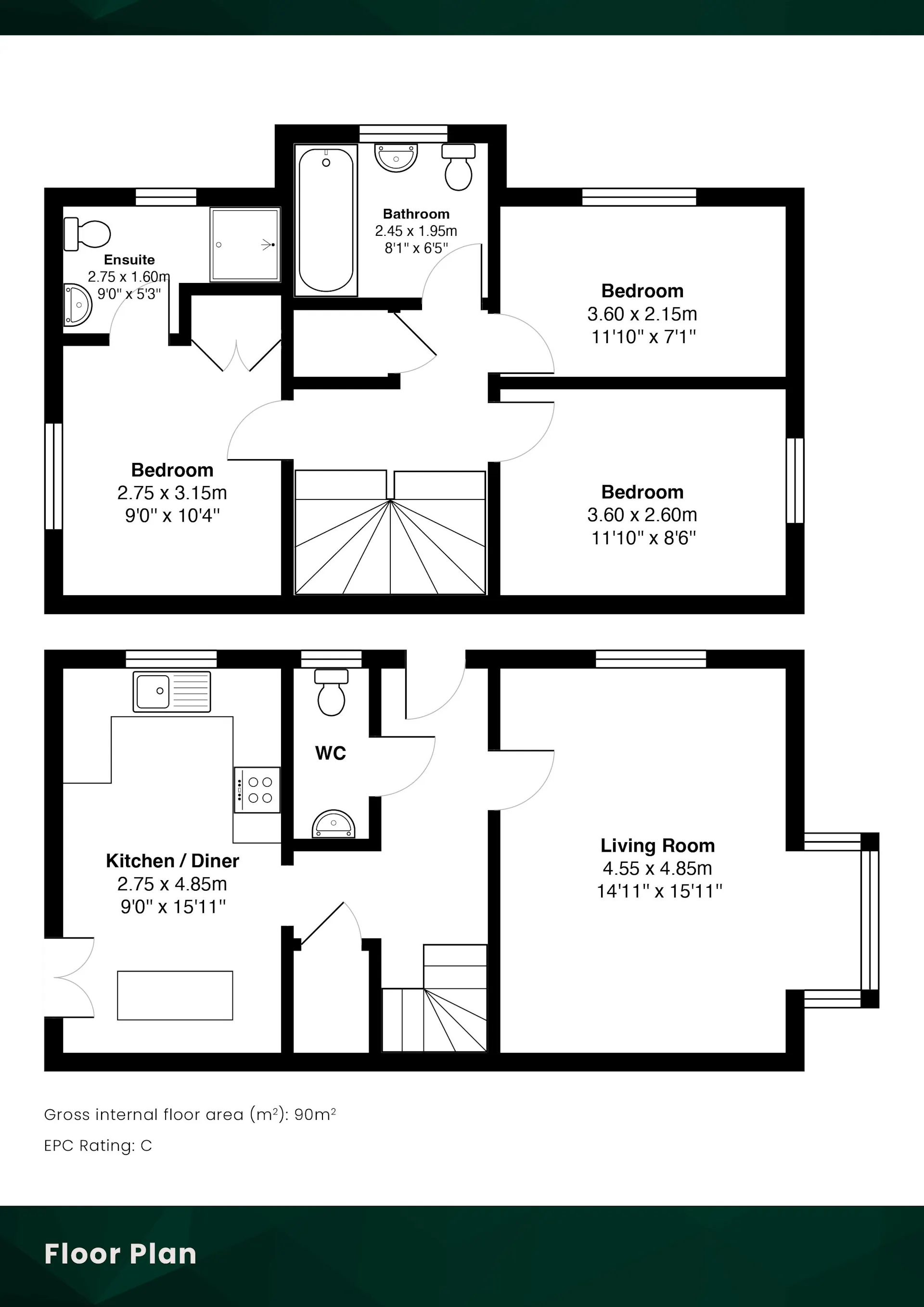 Upstairs, the property continues to impress with three well-proportioned bedrooms, all bright and versatile with ample space for various furniture arrangements. The principal bedroom benefits from a modern en-suite, while a well-appointed family bathroom serves the remaining rooms.