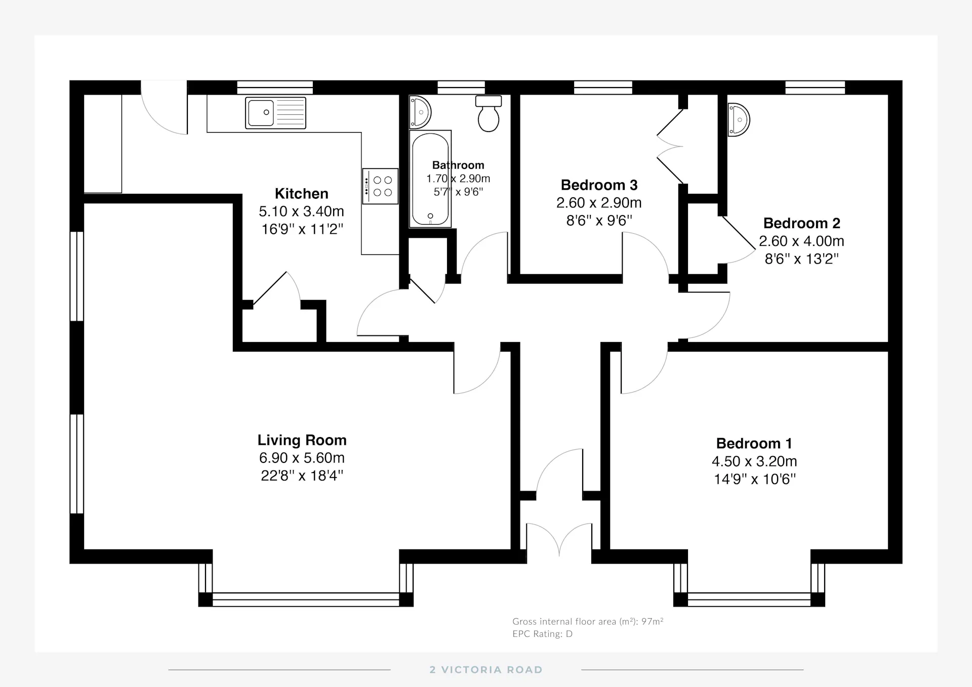 At the rear, three spacious double bedrooms offer peaceful retreats, complemented by a three-piece family bathroom, partially tiled.