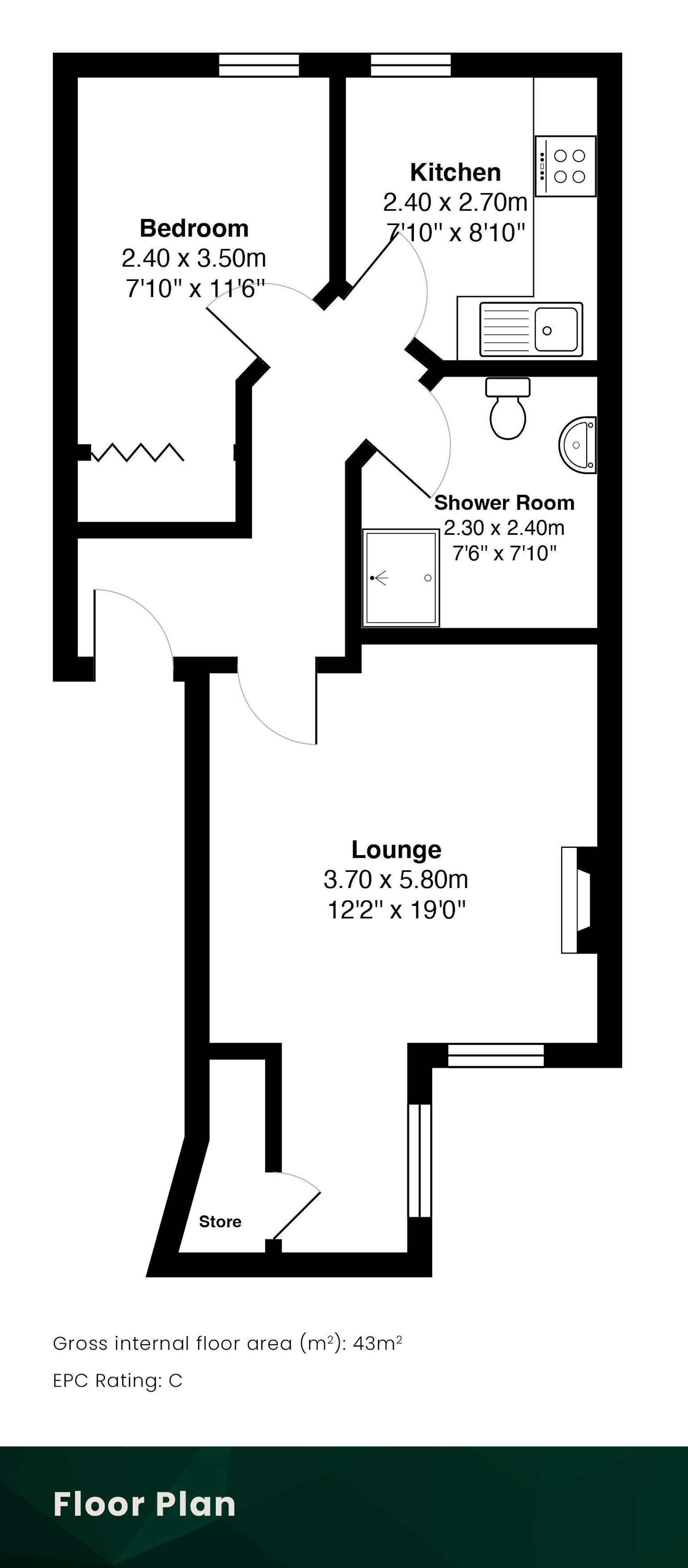 The standout feature of this home is the spacious lounge, which comfortably accommodates both living and dining furniture and incorporates a defined study area, perfect for home working or quiet reading space without compromising the main living zone. The modern fitted kitchen provides ample storage and worktop space, designed for practical everyday use. The bedroom is a well-proportioned double with built-in storage, ensuring a clean and uncluttered feel. A good-sized shower room completes the accommodation, offering contemporary fittings and ease of maintenance.