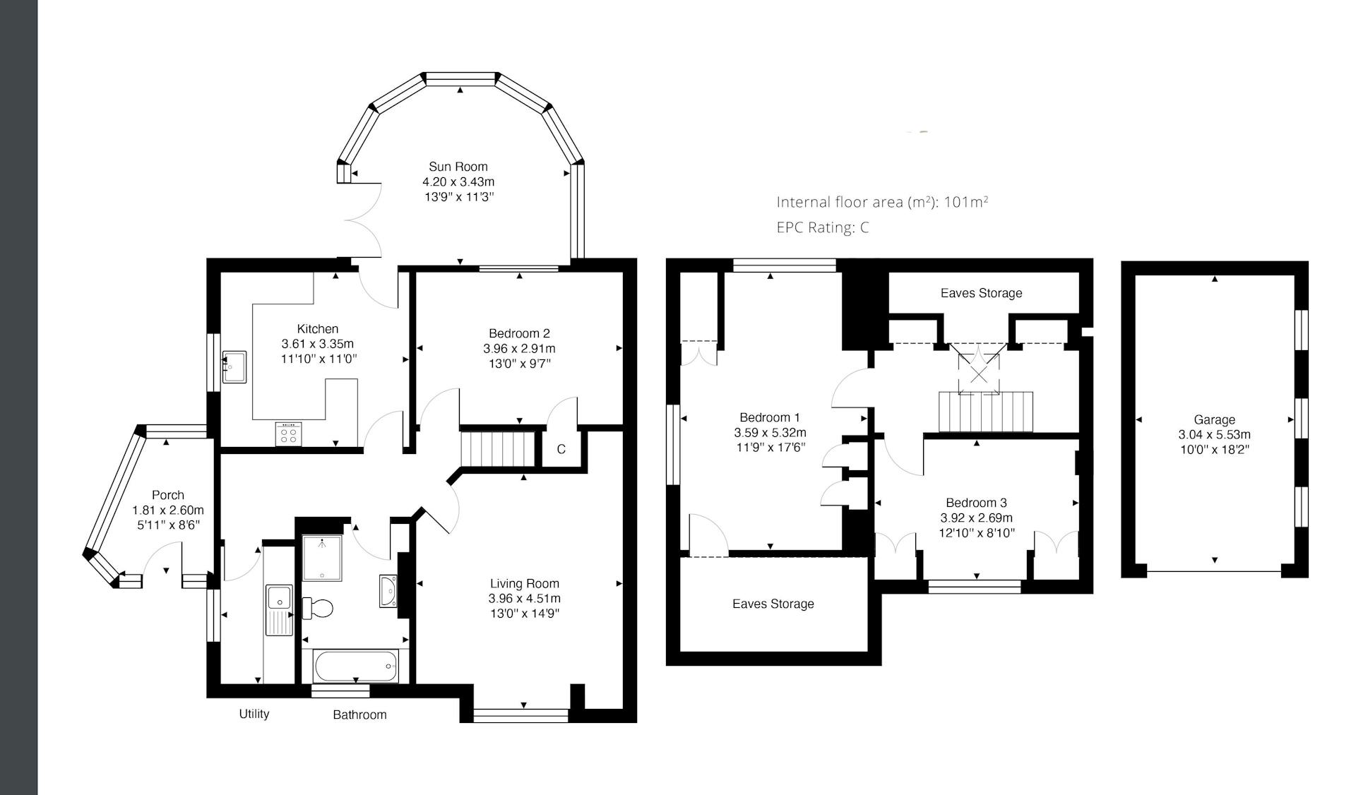 Upstairs, the landing offers eaves storage and leads to two further double bedrooms, including a stunning dual-aspect master bedroom with integrated wardrobes.