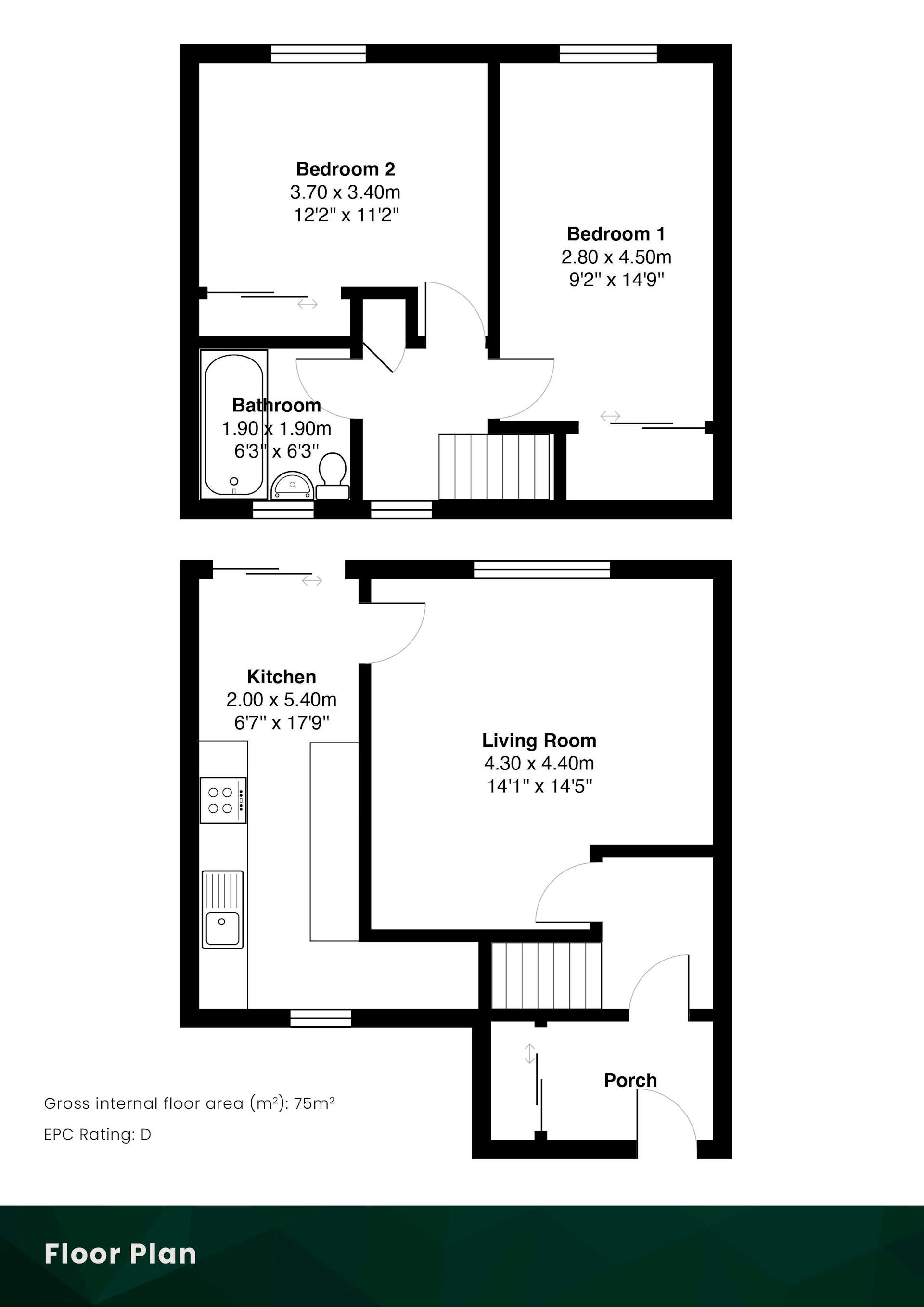 Upstairs, both bedrooms are generous doubles with built-in wardrobes, while the bathroom has been upgraded with a fresh, contemporary finish. Storage has been thoughtfully designed throughout the home, including a handy vestibule cupboard, under-stair storage and loft access.
