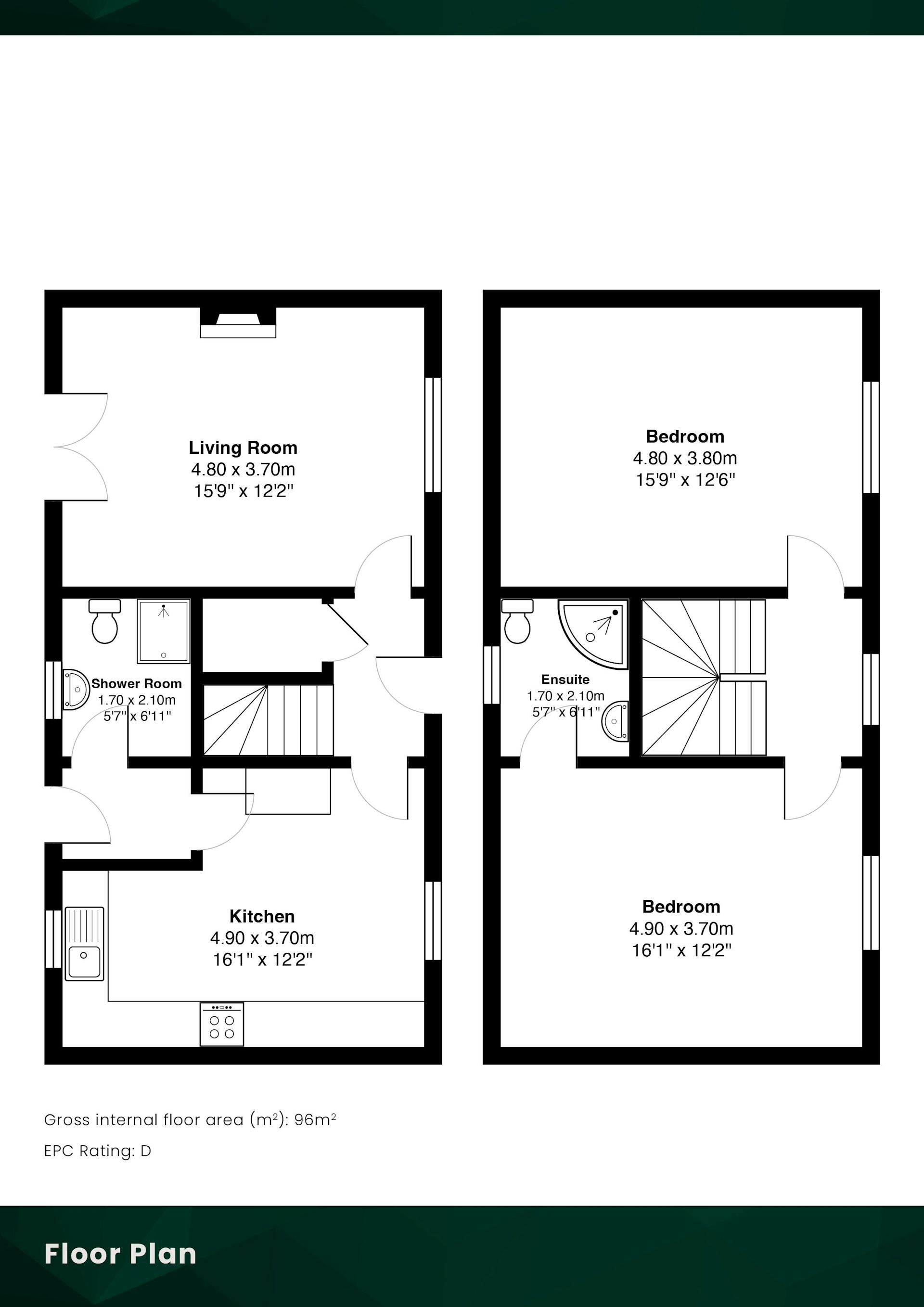 On the first floor, the property offers two well-sized double bedrooms. The principal bedroom benefits from an en-suite, finished to a high standard. Both bedrooms retain original, fully functioning shutters, adding charm and character.