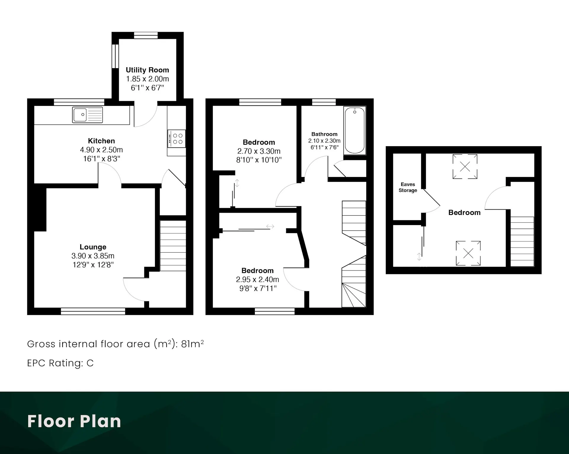 The second floor hosts the third bedroom, currently utilised as a games room and home office. This flexible space can easily be adapted to suit individual needs, whether as a bedroom, workspace, or hobby room.