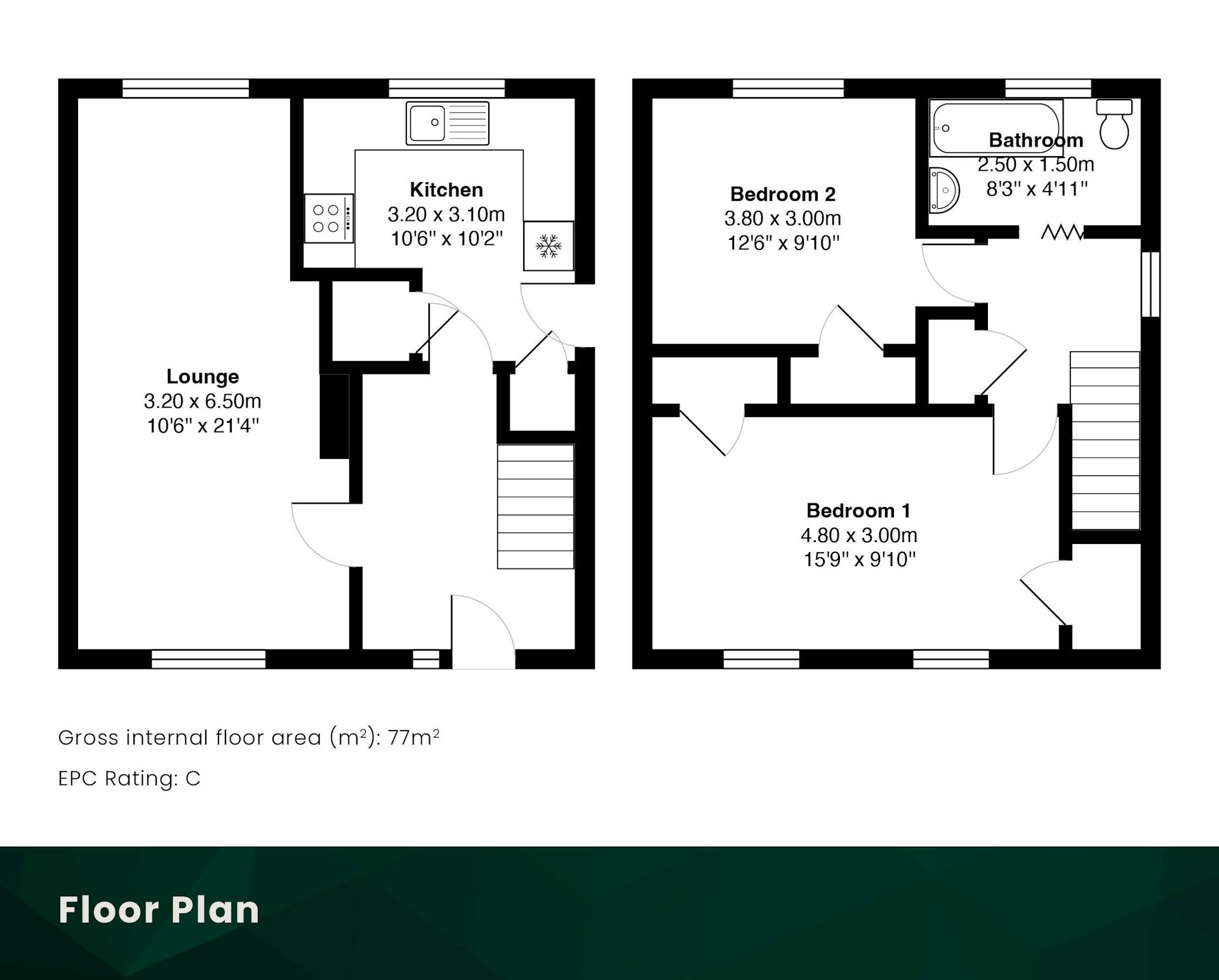 Upstairs, the property includes two well-proportioned bedrooms, both with built-in storage to help keep things organised. The bathroom, while functional, presents an opportunity for updating and could be transformed to suit your personal style.