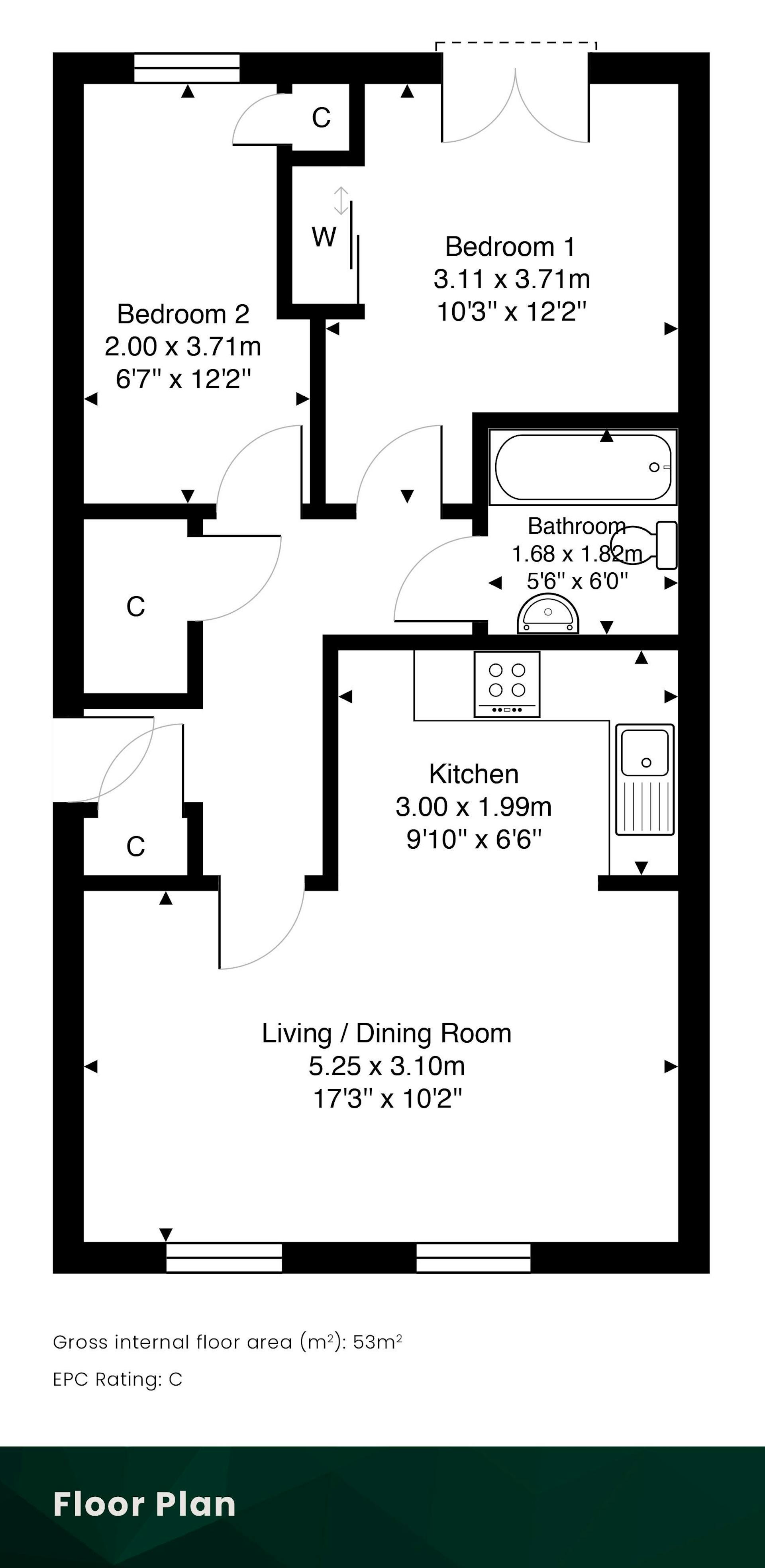 The principal bedroom is of excellent proportions and features integrated wardrobe storage along with French doors opening to a Juliet balcony. The second bedroom is also well-sized and offers flexibility for use as a guest bedroom, home office, or fitness space. A stylish modern bathroom with a three-piece suite completes the internal accommodation.