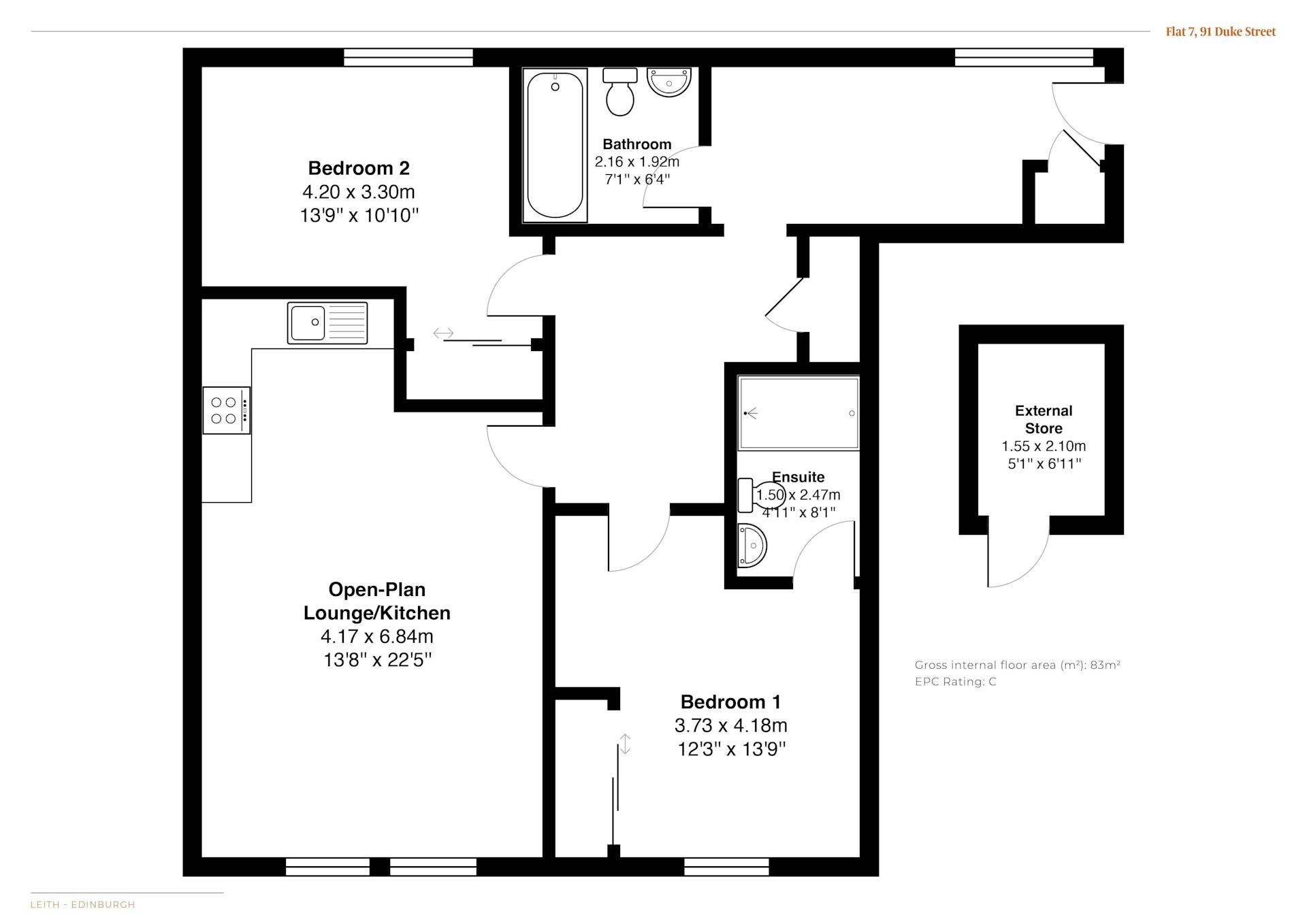 In addition, the property benefits from the high-quality finish and distinctive character expected within this sought-after development, which also features landscaped and well-maintained communal courtyards, as well as maintained building and communal areas. Situated in a superb location close to Leith Walk, the amenities of The Shore, transport links, and the city centre, this is a rare opportunity to acquire a modern flat within a converted historic building in one of Edinburghs most vibrant districts. The property also includes a secure storage cupboard and private allocated parking within a secure car park.