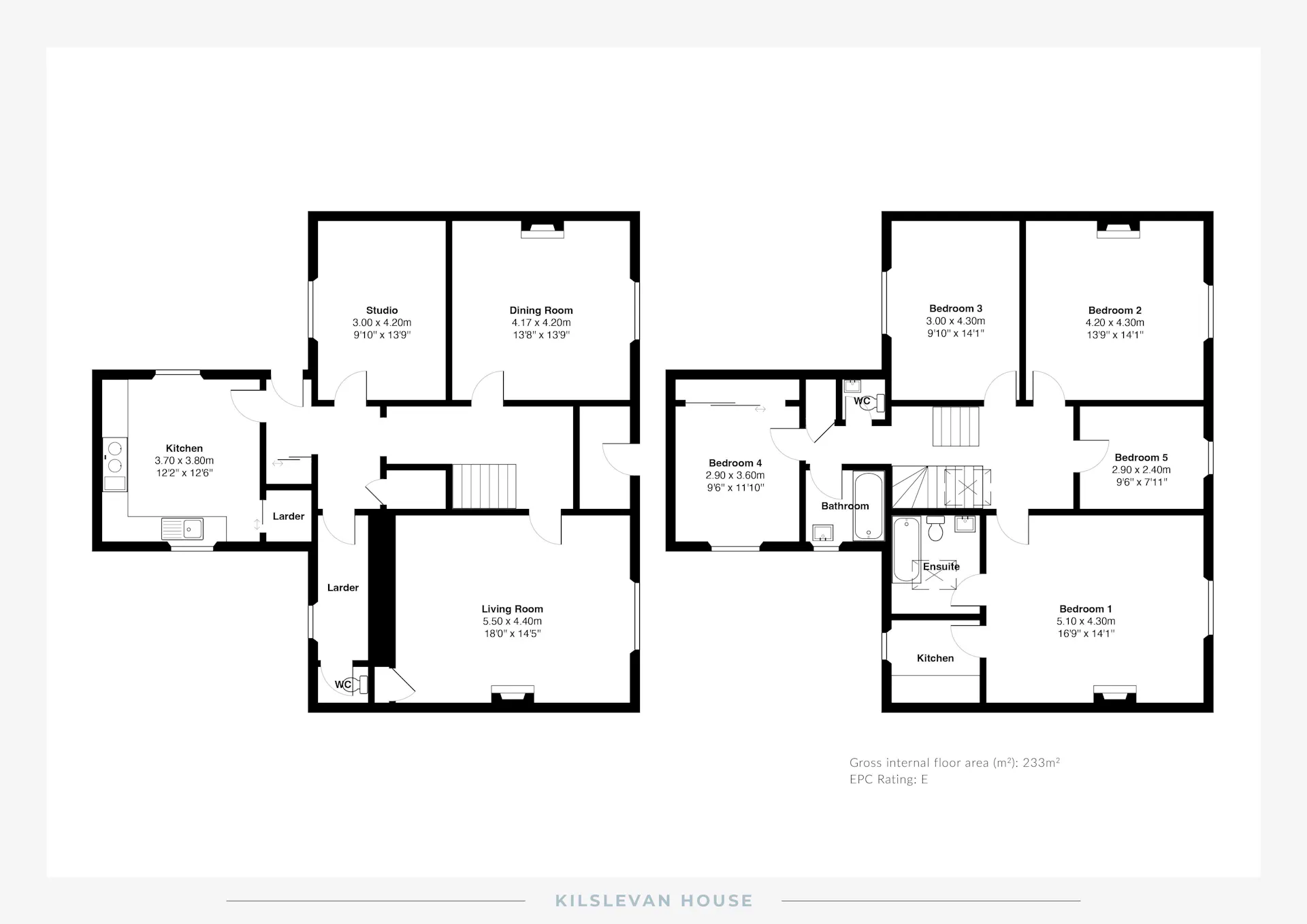 To the rear of the house, the kitchen offers ample worktop space and excellent storage. It has a 4 oven Aga, so is always a warm and cosy room for everyday living and eating. A beautiful curved staircase leads from the front hall to a light and airy landing, which enhances the sense of space throughout the home.