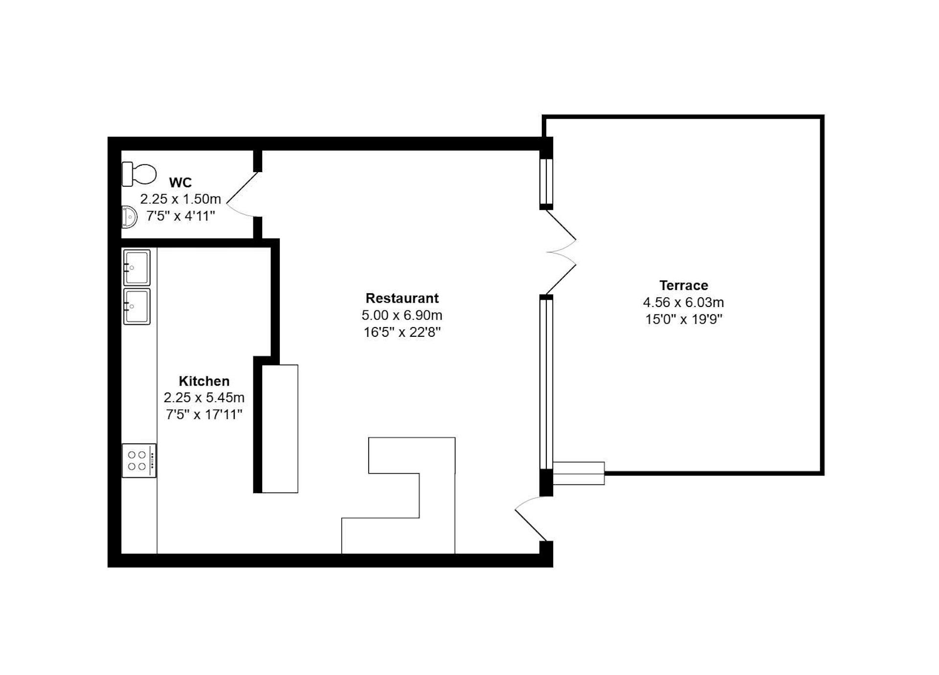 The restaurant offers approximately 45 covers split between a stylish main dining area and a heated terrace, both finished to a high standard. The layout provides a warm and inviting environment that caters equally well to casual dining and more intimate evening service.